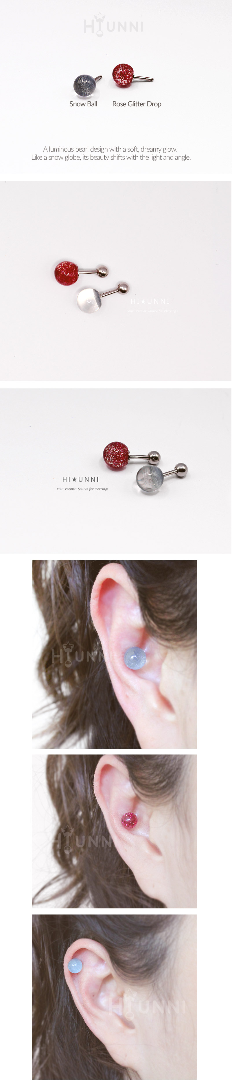 Sparkling Snow Globe Pearl Stud,16G Cartilage Earring (Helix/Conch), 316l surgical steel, Sold as piece
